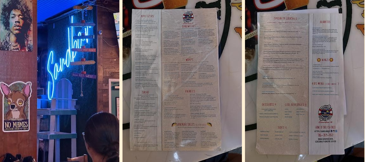 Every corner of Sandbar tells a story. From the walls covered in memorabilia to the bar serving up expertly crafted cocktails, the spirit of the place invites you to explore. It’s a tribute to the vibrant culture of Miami, making visitors feel like part of the family.