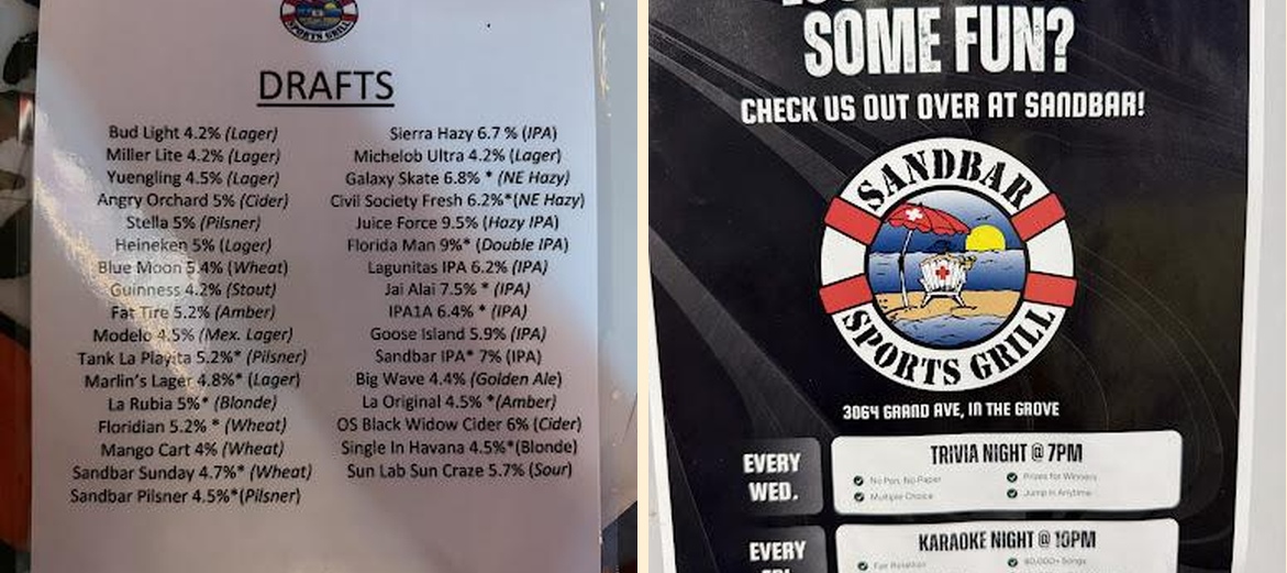 Sandbar Sports Grill opened its doors over twenty-one years ago in Coconut Grove. The founders envisioned a relaxed place for locals to gather. With a unique blend of sports and good food, it quickly became a staple in the community.